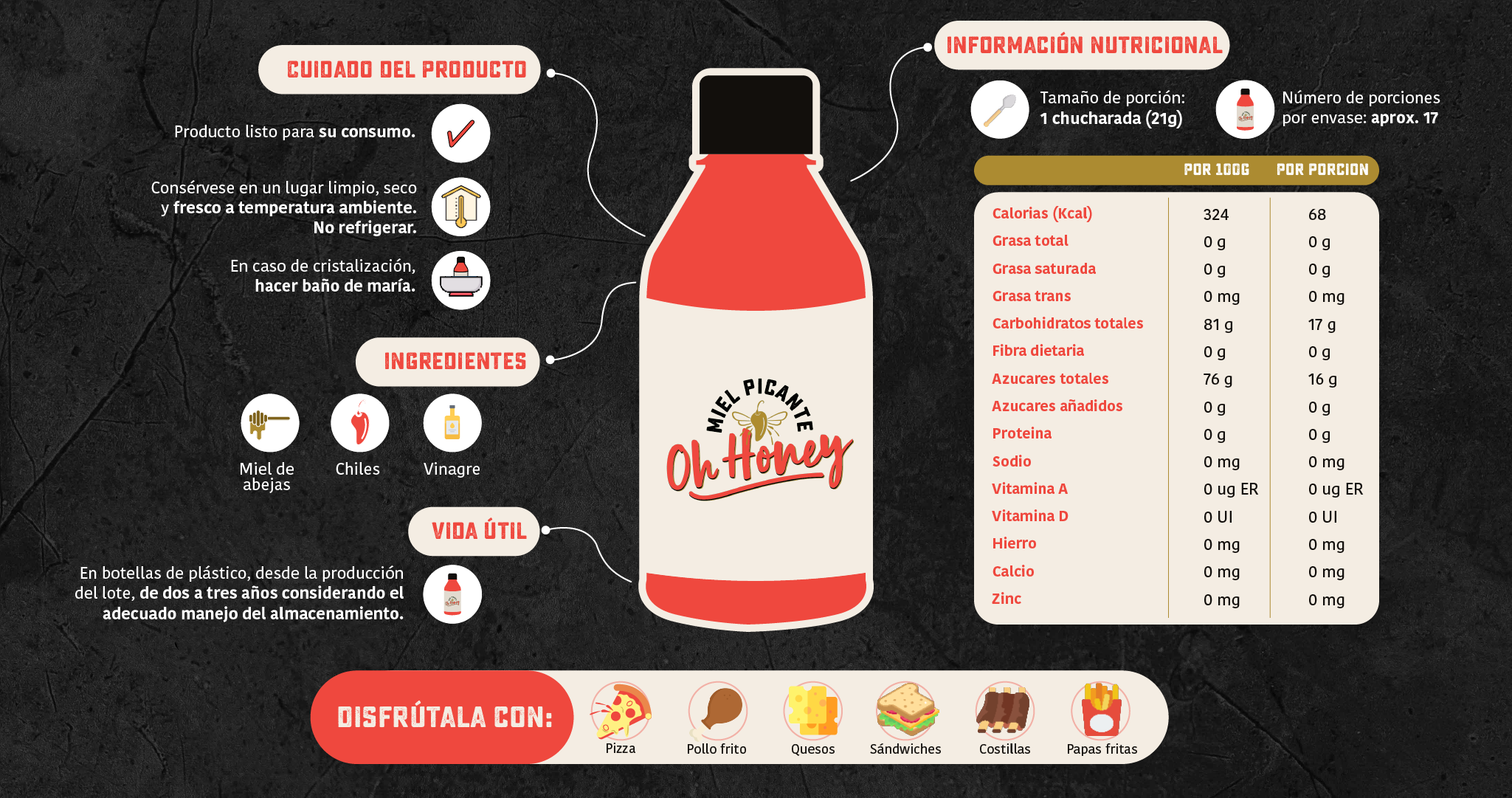 Oh Honey es 100% natural, sin gluten, paleo-amigable y no contiene azúcar ni conservantes artificiales.